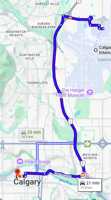Directions from Airport to Sandman Signature Hotel Downtown (888 – 7th Avenue SW)